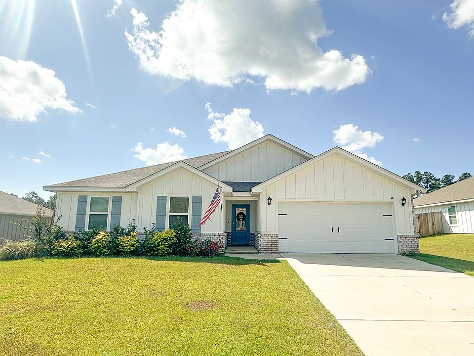 Newly built 4 Bedroom 2 Bath home smart home in Stonebridge located in Spanish Fort. Luxury Plank Floors throughout, Quartz Countertops, Double Vanity in Primary Bath and Guest Bath with updated fixtures and mirrors, Garden Tub, Separate Walk in Shower, Private Water Closet, Split Floor Plan, Large Walkin Closet. The back yard is fully fenced with an additional 14'x 18' concrete patio. Spacious two car garage. This community is full of amazing amenities including two pools, clubhouse, playground, basketball court, two tennis courts,two pickleball courts, baseball feild, soccer feild, putting green, and three fishing ponds for the little ones. Featuring the 10/10 recommended Stonebridge Elementary just .7 miles the front door. Neighborhood is golf cart friendly with food trucks weekly and many events all throughout the year. Lawn care is provided.