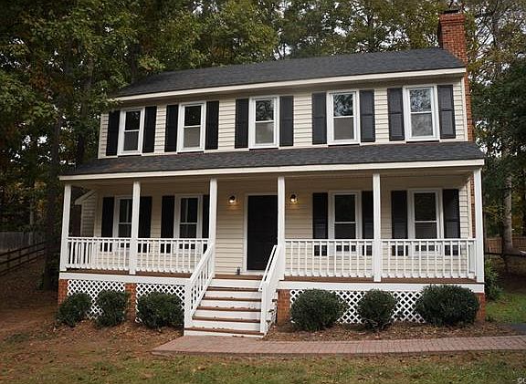 This gorgeous RENOVATED HOME SHOWS LIKE A MODEL and is seated on a flat cul-de-sac lot in the very sought-after Deer Run neighborhood in Chesterfield County. The beautiful country porch will welcome you as soon as you step in. ABSOLUTELY EVERYTHING IN THIS HOME IS NEW including the Roof and the 2 zoned Heat Pumps. The kitchen offers NEW: Cabinets, Granite Countertops, Stainless Steel Appliances including Dishwasher, Smooth top Range and Built-in Microwave, Recessed Lighting & all New Fixtures. Fresh Paint Inside. Beautiful hardwood floors were installed downstairs and brand New carpet upstairs. Vinyl Windows, Maintenance Free Vinyl Siding. Remodeled baths with tile floors, New fixtures, New granite sinks, toilets & cabinets. The nice deck and wooded backyard are perfect for entertaining. IT'S TRULY A GORGEOUS HOME... Top Rated Chesterfield Co Schools...Pictures don't do justice! You have to see it for yourself!