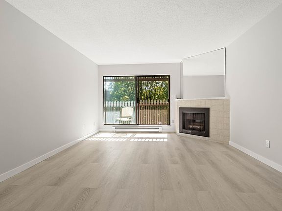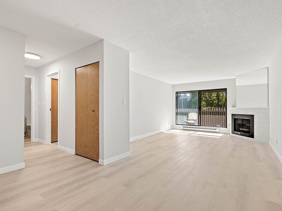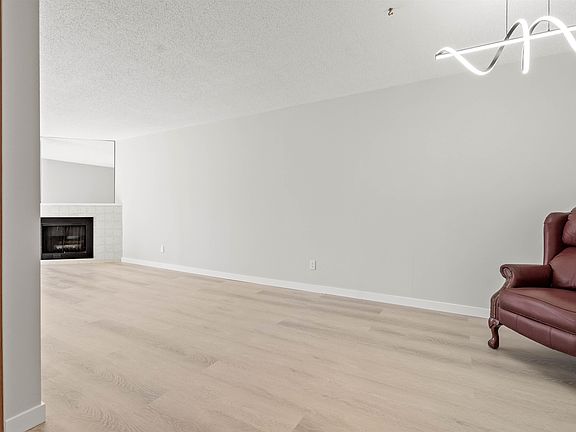 Designated diningLarge bedroomNewer kitchenStainless steel appliancesOff-white shaker cabinetsGas fireplaceLarge south facing balcony