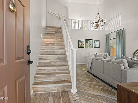 Welcome Home! You can stop looking! This gorgeous, updated & well maintained home is just waiting for it's new family. The pictures are beautiful & it's better in person! Upgraded 3 door slider to the beautifully landscaped backyard &. sparking pool with fabulous entertainment areas. Added window makes the dining (family) room with brick accent wall light, bright & inviting. 3 full bedrooms + loft upstairs, LR/DR/FR guest bath & large laundry room down. Kitchen features upgraded cabinetry, upgraded stainless appliances & large pantry. Master retreat has new flooring, new double sink vanity & updated lighting and mirrors. Stunning tile wood look floor throughout main living areas & up the stairs. Updated lighting too! OWNED SOLAR too! Low, low APS bills - Average $80. Wow! DON'T WAIT!
