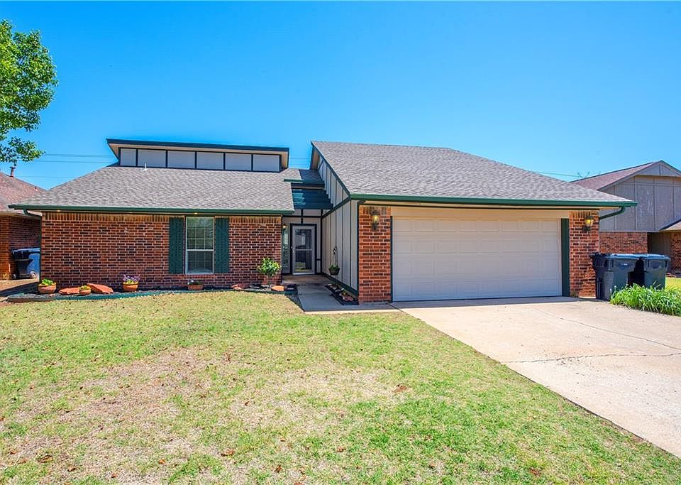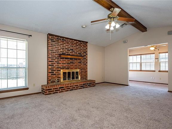 Need easy access to I-35 or the turnpike? This could be the one for you! Charming home with a vaulted beamed ceiling in the family room with a wood burning fireplace, ceiling fan, and new carpet! Extra room off of the family room makes a great office or hobby room and has new carpet installed. Kitchen with eat-in dining has newly resurfaced countertops and new backsplash. Newer stove with convection flex dual oven. Breakfast bar. Laminate flooring in the hallway and all bedrooms. Security System. Storm shelter in garage. New deck for summer entertaining and backyard barbecues! Roof replaced in 2012. New garage door in 2012. Vinyl frame low E windows installed in 2012. Fresh paint in family room, office, dining and entry. New shutters on exterior. Storage Shed. AHS Warranty. Call today!