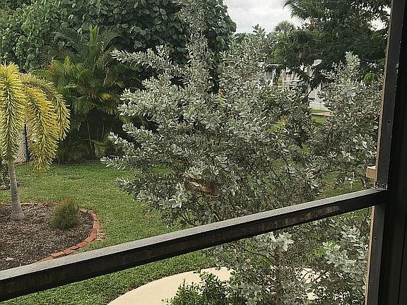 Less than 5 miles from Sanibel & Fort Myers Beach. Hardwood Flooring & Crown Molding are some of the features in the Living Room & Dining Area. Custom Built in Entertainment Center for your electronics is a great space saving feature. Custom Sliding Screen Doors hide a Pantry & space for your Washer & Dryer. Galley Style Kitchen has Corian Counters & wood cabinetry plus Slate floor tile. Kitchen has a pass through to Dining Area. Convenient Half Bath Downstairs. Master bedroom has Volume Ceilings making it feel very spacious. More custom built ins here too. Master Bathroom has a custom Mahogany Vanity,Combo tub/shower and soapstone tile floor (needs finishing) Guest Bedroom has Hardwood floor & a good sized closet. Private entrance at rear leads to your back screened Porch and overlooks the Community Pool and lawn area with Mature Trees.