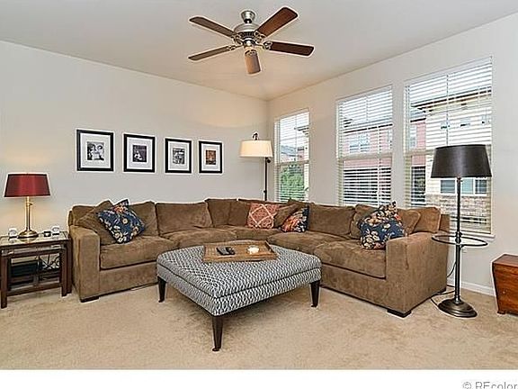 Rare Grandview Model with mountain and amenity views and quick highway access to Boulder/ Denver, dual master suite design, open main level great for entertaining with powder bath, all stainless steel kitchen appliances, island kitchen, breakfast nook or office area, oversized tandem garage with extra storage, close to community pool, fitness center and clubhouse.