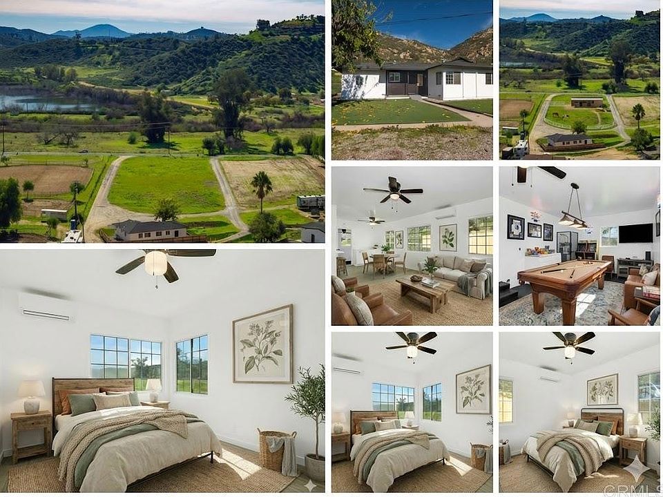 Take control of your property—and your future. This fully updated 3BR/1BA home sits on 2.07 flat, usable acres in the El Monte Valley, offering the rare combination of move-in comfort and unlimited potential. The numbers make sense. At $779,900, you’re acquiring two level acres in San Diego County—comparable Poway lots exceed $1.2M. The new septic system ($30K+ value) eliminates a major permitting hurdle for a future ADU, which could generate $2,500+/month in rental income. Two driveways accommodate work vehicles, RVs, boats, and trailers—no more $300/month storage fees adding up to nothing. The 1,336 sq ft interior has been thoughtfully refreshed: quartz countertops, updated cabinetry, new flooring, and fresh paint throughout. A brand-new ductless HVAC system with four mini-split units provides efficient, zone-controlled comfort in every room. The single bathroom is practical and updated—and for buyers focused on the land’s potential, it’s a non-issue. But the real story is outside your door. Picture morning coffee with panoramic views across the valley toward the San Diego River. Imagine your kids raising 4-H animals, your horses grazing in a pasture you built yourself, or simply enjoying the peace of land that belongs to you—no HOA letters, no shared walls, no asking permission. Louis A. Stelzer County Park borders the property, offering miles of trails for riding, hiking, and exploring. El Capitan High School and its renowned agricultural program are minutes away. This isn’t just a house; it’s a lifestyle your family will remember. The flat terrain is ready for your plans: equestrian facilities, a detached workshop, organic garden, hobby farm, or a guest house for aging parents who want proximity without sharing a roof. For the remote professional seeking space and quiet, the third bedroom becomes your dedicated home office—30 minutes from downtown, a world away from apartment walls. This property rewards decisive action. Flat, usable acreage in San Diego doesn’t last. Some photos enhanced with virtual staging. Property boundaries approximate—verify with agent.