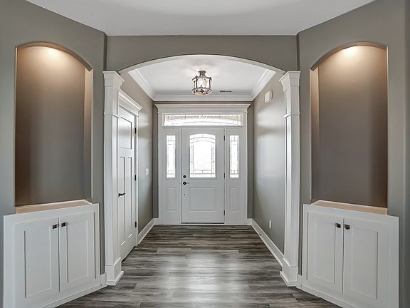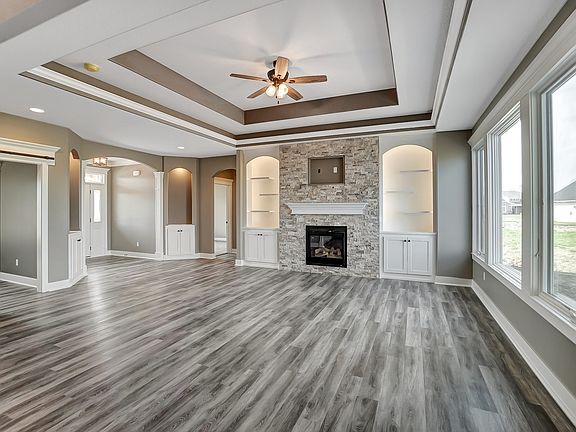 - Ceiling Fan(s), Kitchen Island, Pantry, Double Vanity, Walk-In Closet(s), Great Room, Stone Counters, Eat-in Kitchen, Crown Molding, Bookcases, Entrance Foyer, Tray Ceiling(s), Open Floorplan, Tub/Shower Combination, Countertops-Solid Surf, Stand Up Shower, Split Br Floor Plan, Utility Sink, Custom Cabinetry