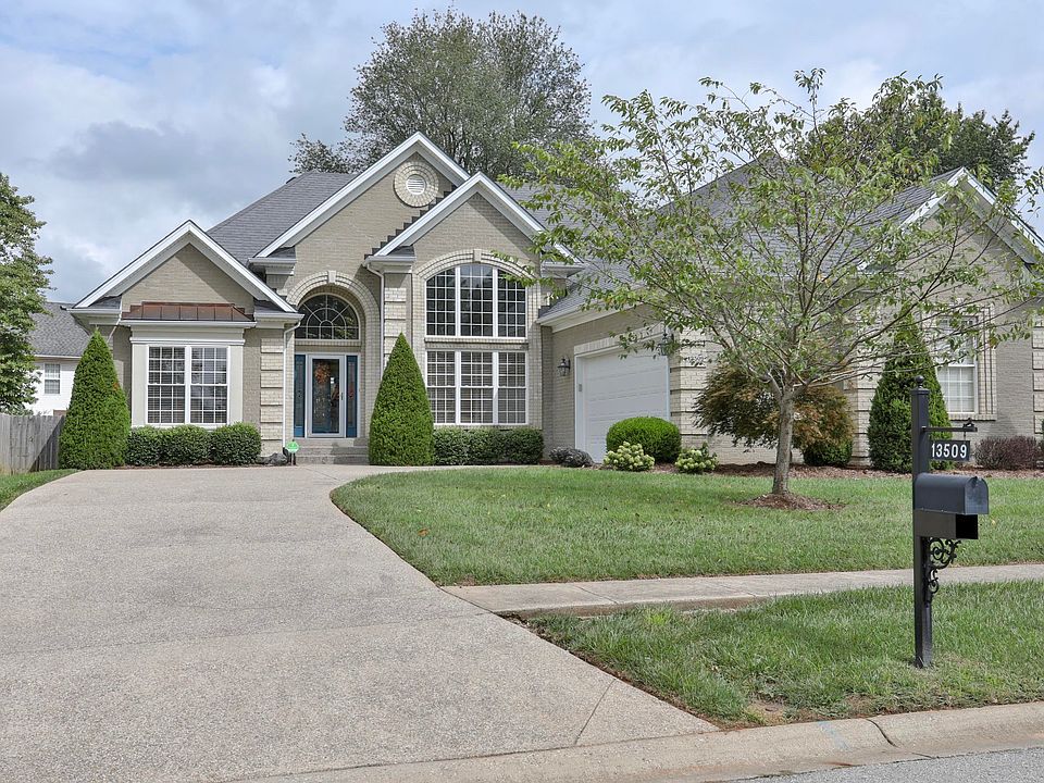 Gorgeous 12 year old super clean OPEN CONCEPT RANCH with a partially finished lower level. You enter through a leaded glass entry into a foyer and great room with hardwood flooring, fireplace and large windows to overlook the deck and wood fenced back yard. The formal dining room has a high trey ceiling, beautiful crown molding, and beautiful chandelier. The eat-in kitchen has cherry cabinetry, granite counters, an island, and top quality stainless appliances. The split bedroom plan has the master suite and master bath complete with heart shaped Jacuzzi tub and separate luxury shower with glass doors. The enormous walk-in closet is another added feature. The other two bedrooms and full bath are located at the opposite end of the home.