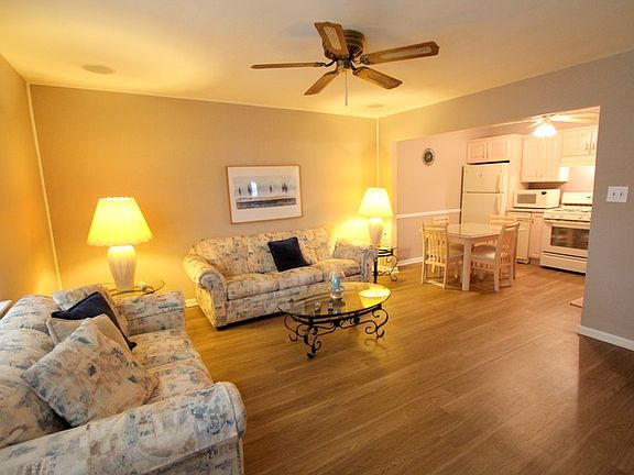 Affordability at the Shore! Lovely two bedroom, 1 bath with open living space Village Green courtyard Quad. Featuring private off-street parking w/ convenient side walkway leading right into the back courtyard. From there you are just a quick & easy 7 block walk or bike-ride to the sandy & sunny beaches! The quaint & quiet backyard offers a bonus area for family BBQ's and entertaining while the children play worry-free of any street traffic. This charming and well-kept beach home has not rented in the past few years but previously produced an upwards of $9000 from just one short full season rental and could easily bring in the standard season weekly rental rate range of $1400-$1600. Newer gas heat, central A/C, new paint through-out, updated sunroom porch area w/ new windows and flooring as well as a new outside shower are all a plus that make this a perfect year-round Cape May Get-A-Way! This home is sold fully-furnished with tasteful design (less personal items), which makes this a no fuss, completely turn-key beach home ready for your enjoyment and/or rental income generator. No flood zone & no parking meters are an added bonus. Do not miss your chance to own a piece of Cape May and enjoy all that this town has to offer...easy to show, call today!