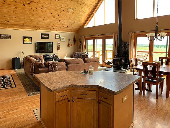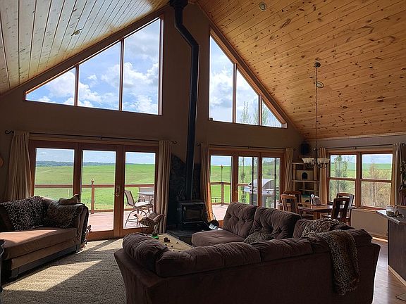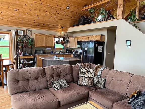 Beautiful secluded setting for this loft style home with Ponderosa Pine vaulted ceilings and loft with lots of glass for unparalleled views of the valley. Open floor plan with kitchen/dining/living room area with 2 sets of French doors to the large deck. The lower area has a large family room with rustic bar and walkout. Add the outdoor firepit, brick pizza oven and smoker and you are set to entertain or just enjoy your park like setting. The grassland and fruit trees complete acreage, and even though very private, you are only 15 miles from SIoux Falls, SD. You need to see to appreicate!