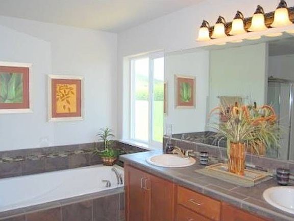 - Hardwood flooring in entry, kitchen & nook - Shaker style birch cabinetry - Granite tile countertops with tile backsplash - Black appliances including free-standing gas range with double ovens, microwave hoodvent & dishwasher - Stainless steel kitchen sink - Gas fireplace with crown molding cap & tile surround - 9' ceilings on main floor - Garden tub in a tile platform & 4'x3' shower in master bath - 36" tall cabinets in master bath - Brushed nickel double handle bathroom fixtures - Sink in laundry room - Front yard landscaping with sprinkler system on a timer - Earth Advantage Silver certification - 90% efficient gas furnace
