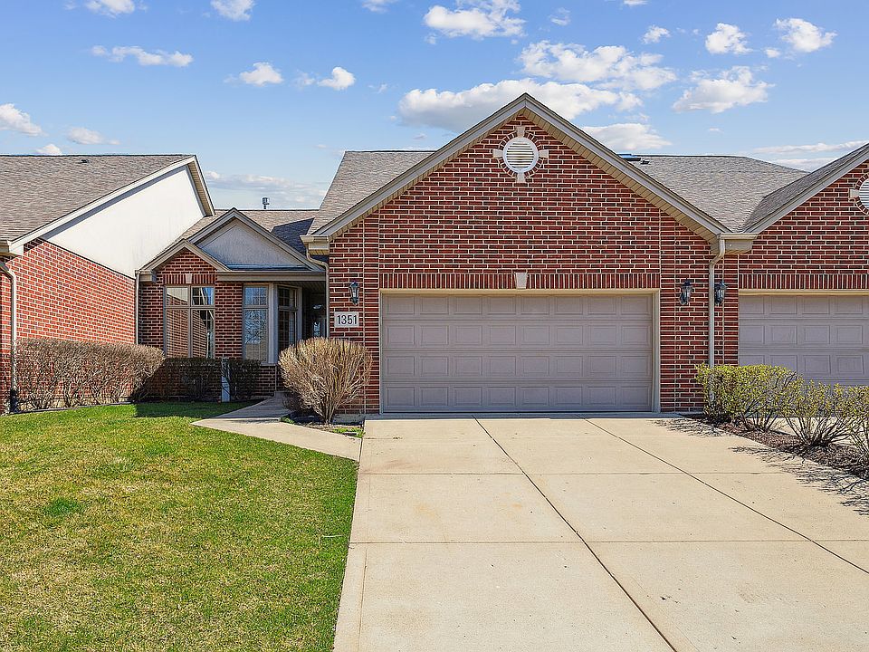 Light and bright throughout, this brick ranch townhome is designed with 10-foot ceilings and solid oak doors on the main level, plus a full finished basement with 2nd kitchen. It has been freshly painted in a neutral tone from top to bottom, including the garage. There is no carpeting on the main floor. As you enter through the covered porch, you are greeted with the large Living Room featuring hardwood flooring, gas log fireplace with recessed accent lighting, and tall windows allowing soft, natural light to fill the room. The Dining Room is steps away and also has hardwood flooring. The eat-in Kitchen has abundant quality cabinetry with pull-out drawers in many of the cabinets, expansive granite counterspace, pantry, table space, white appliances and an atrium door to the patio which offers a retractable, motorized awning. The Primary Bedroom is spacious and features wood laminate flooring, tall windows with blinds, plus walk-in and wall closets. The Primary Bathroom has a separate tub and step-in shower with ceramic tile surround, large vanity and linen closet. The 2nd bedroom has wood-laminate flooring and corner windows to maximize furniture placement. The 3rd Bedroom/Office offers French doors, hardwood flooring and a wall closet. There is a convenient 1st Floor Laundry Room with a utility sink, washer, dryer, extra cabinets and a coat closet. The FULL FINISHED BASEMENT is designed with a Game Area, Family Room with NEW carpet (2024), 2nd Kitchen, Office, Exercise Room and 3rd Full Bathroom. This could be great for related living. There is also a huge storage room with a hook-up for a water softener, and a utility room with newer humidifier, furnace and A/C (all 2020), and water heater (2020). Newer roof (2016). Lawn irrigation system water usage and maintenance is covered by the monthly dues. Great location in town just minutes from I-355 and I-55, Metra, shopping, dining, The Forge outdoor recreation center, parks, and the Blue Ribbon award winning Lemont High School. Estate sale - sold As-Is.