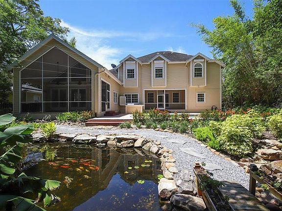 Outdoor kitchenSaline-filtered heated poolMature treesFamily roomKoi pondDining roomScreened patios