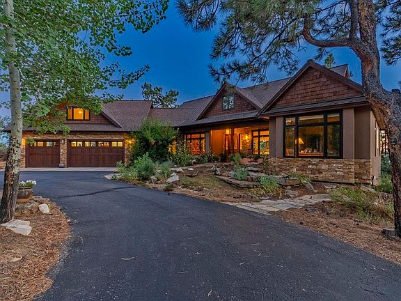 1351 Durango Cliffs Drive | Durango, Colorado. Tucked within one of Durango’s premier exclusive gated communities, within minutes from downtown, this stunning custom residence offers refined living with exquisite detail and craftsmanship throughout. Designed for the discerning buyer, this exceptional home seamlessly combines elegant architecture with top-tier amenities, dramatic living spaces, and serene mountain views. Step into the impressive great room, where soaring cathedral ceilings, travertine tile flooring, and expansive windows invite natural light and scenic vistas. A striking two-sided stacked-stone fireplace anchors the space and opens into a warm, wood-paneled library—perfect for quiet retreats or elegant entertaining. Adjacent to the entry is a formal dining room featuring rich hardwood flooring, a built-in buffet, and a custom hand-painted tray ceiling—ideal for hosting intimate gatherings or festive dinners. The chef’s kitchen is a true masterpiece, thoughtfully open to both the great room and the dining sunroom, and appointed with premium appliances including a Wolf cooktop, built-in KitchenAid refrigerator, oven, microwave, warming drawer, compactor, and a Bosch dishwasher. Granite countertops, a travertine backsplash, and a stacked-stone chimney add to the upscale ambiance. The breakfast bar—complete with custom hanging seats—comfortably accommodates five. The main-level primary suite is a sanctuary of comfort and style, boasting a cozy corner gas fireplace, a custom-painted tray ceiling, dual oversized closets, and a spa-inspired en-suite bath featuring granite counters, a soaking tub, walk-in travertine shower, and his-and-hers vanities. A privately located guest bedroom is also situated on the main floor, designed with wheelchair accessibility in mind and an adjacent full bath finished with travertine tile and a walk-in shower. A large laundry room with granite counters and custom cabinetry sits just inside the entry from the heated three-car garage. Nearby, a staircase leads to a versatile bonus room that includes built-in office cabinetry, a wet bar with beverage fridge, a full bath with solar tube lighting, and elegant hardwood floors with blue quartz tile accents in the walk-in shower. The walk-out lower level offers a full suite of luxury amenities, including a spacious family room with gas fireplace and sliding doors leading to a large flagstone patio. Wine connoisseurs will delight in the temperature-controlled wine cellar adorned with cork flooring, stacked-stone, a decorative chandelier, and custom mural. A second wet bar features a granite slab countertop, refrigerator/freezer, and a unique petrified wood basin. Additional lower-level features include a private home theater with dedicated air conditioning and tiered seating for six, a fully equipped fitness room with mirrored wall and cork flooring, and a rejuvenating sauna. Two generously sized bedrooms and a full bath with travertine tile and granite countertops complete this floor. Outside, the home's exterior is finished in elegant stacked-stone and stucco, with a welcoming flagstone walkway leading to the covered front porch and custom entry door. The three-bay heated garage is a standout feature, completed with mahogany cabinetry, washer/dryer hookups, a dog shower and sink, utility closet, and dual workbenches. Additional property highlights include a C4 security system, central vacuum, radiant heat driveway, and tranquil water features—all set in a quiet, private setting with convenient access to town, recreation, and Durango’s renowned quality of life.