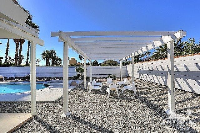 Beautifully remodeled Palm Springs Hollywood Regency styled home. This bright and fresh 3 bedroom, 2 bath home has been upgraded with the finest materials and superb design sense - high ceilings, designer lighting and ceramic plank tiled floors are just a few. Stunning mountain views can be seen from nearly every room in the house. The gourmet kitchen features stainless appliances and Caesarstone counter tops. The master suite boasts stunning views, while the bathroom has glass subway tile with a walk-in shower. The property is fully fenced and has modern, low-maintenance landscaping (artificial drought resistant grass) and breathtaking, unobstructed mountain and pool views from the back yard. Relax and enjoy in what is the epitome of Palm Springs living spend endless sunny days lounging at the sparking pool and spa and on cool evenings, gather for cocktails.