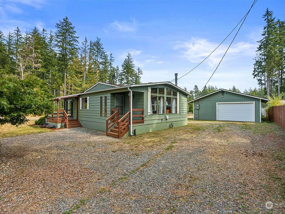Welcome to Phillips Lake, the perfect opportunity on almost an acre with a shop/garage. Quiet & welcoming lake community offers year round fishing, swimming, boating & more w/public boat launch for all of your water toys. The lake is 3 miles around, perfect for walking, biking, or running w/little traffic. Large primary bedroom w/walk in closet and sizeable bathroom, 2nd bedroom has direct bathroom access & walk in closet. Great layout with plenty of space and storage. Sizeable living room with cozy wood burning stove, kitchen offers eating space & dining room. Relax on your covered & private back deck, or cozy covered front porch. No HOA. Easy access to HWY 3. Don't miss this wonderful home.Cash/conventional.