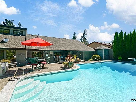 SE Salem hidden GEM! Custom built be the Morrow Bros., this home was designed for entertaining around the back yard private oasis with sparkling 10 ft. deep inground pool. Impressive in design & architectural features, lots of big windows & several skylights, 2 family rooms, wood floors, vaulted ceilings, chefs tiled kitchen, SS appliances, blt-ins, glass atrium, LR/DR, FP, garden shed, stone work, fenced & private, 2020 cedar decking, 2018 siding/paint/windows, 2019 furnace, roof 2011,see virtual tour