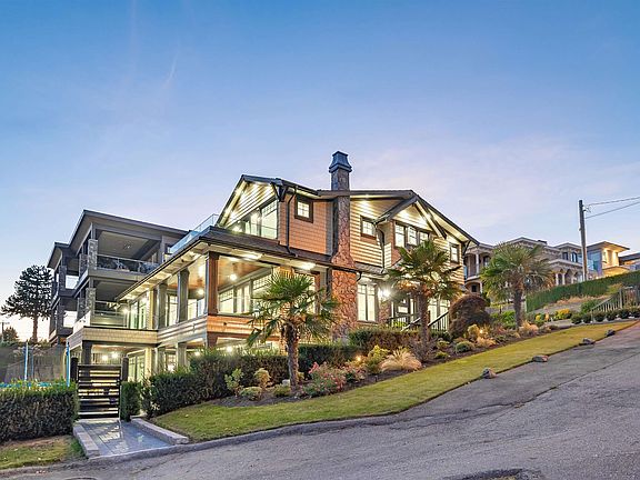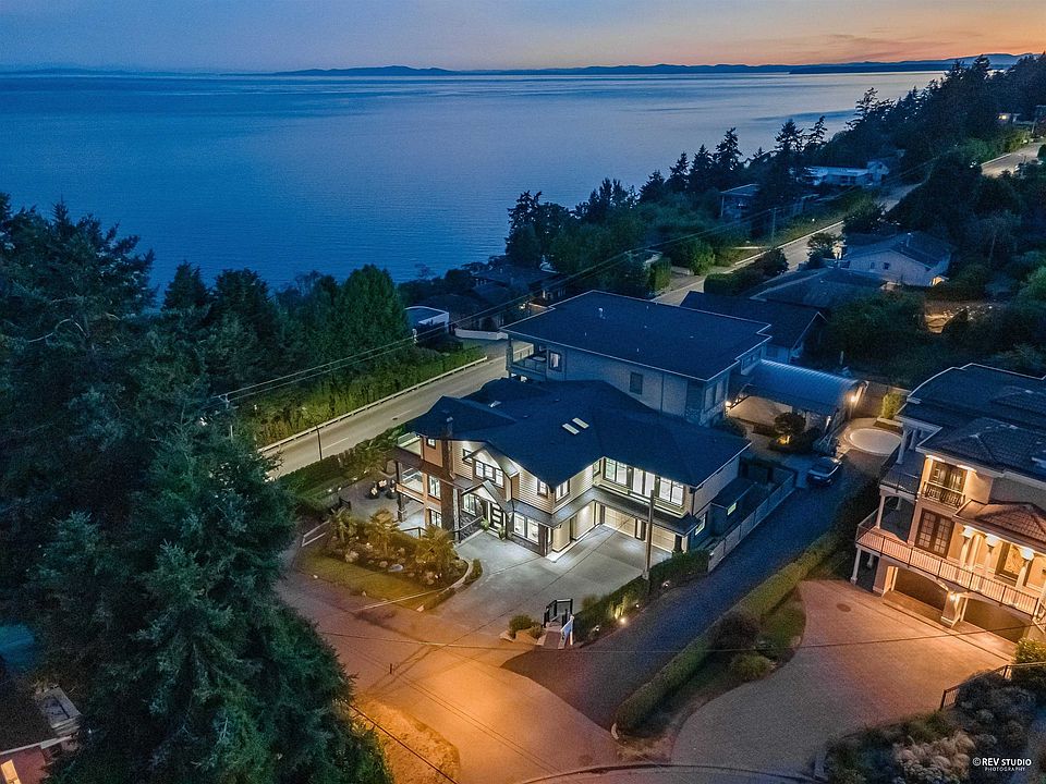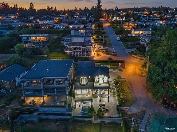 INCOMPARABLE Classic Masterpiece, built by locally valued builders, offers you the Panoramic Ocean Views from all 3 levels of luxury living: Semiahmoo Bay, Mt. Baker & White Rock Pier. Overlooking the Pacific Ocean, this home spreads over 5,911 sq. ft. of impeccable woodworks w/ luxury finishing and features (radiant heat, A/C and more). On top of an open and sophisticated layout, you can experience your own gourmet chef's kitchen, nook and great rm all the while facing south sun-soaked yard surrounded with greenery. With only 5 min walk to the beach, upper flr offers a spacious loft/rec area, oversized master w/private balcony and 3 bdrms. Ent.Bsmt: media rm, wet-bar, and 2bdrm legal suite. Schl: Semiahmoo second (IB). This is A MUST SEE home for its rare location and elegant experience.
