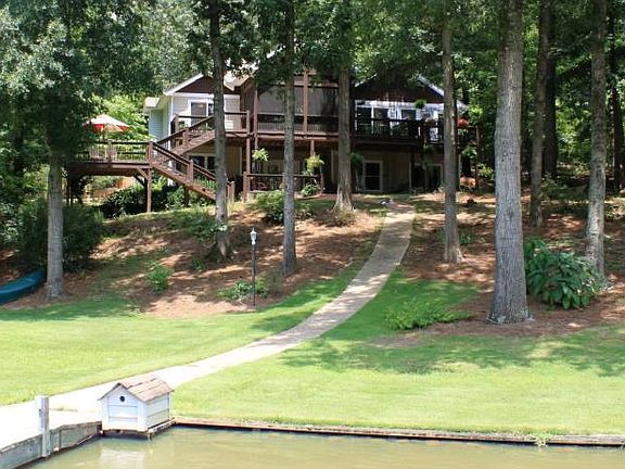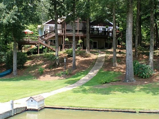 Jonathan & Alyce Vining Present... Private and well maintained lake front home in sought after Morgan Estates. Unique lake front parcel with 1.65 acres, over 200' of shoreline, good water depths, and mid-cove view looking out to the main lake. Completely renovated and updated home with an open floor plan and a wall of windows along back overlooking the lake. Multiple entertaining areas including a screened porch, three open decks, and covered patio off the terrace level. Finished terrace with second great room, bar area, two bedrooms, bath, storage area, and work shop. The home is positioned deep off the road in a wooded setting with 2-car attached garage and 1-car detached garage. Great location, great setting, and a great home. Must see to appreciate! Call us today @ 706-816-1010 for more information!
