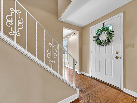 Located in Williamsville School District, Heim Elementary, this center entrance 3 bed 3.5 bath colonial features a spacious LR, Kitchen with Birch cabinets, new countertops , Butcher block island, SS sink and appliances. Family room W/gas FP Hardwood Floors throughout. Owners suite w/remodeled bath and oversized shower. Partially finished basement w/ new carpet and full bath. cedar closet & access to back yard. Patio that overlooks spacious back yard W/shed. Updates include central A/C 2023 Furnace 18, Tankless HWT 2017 Sump Pump 2023 & most windows.