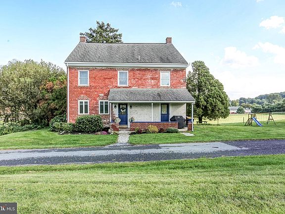 Welcome to this 1840 all brick farm house that's been totally renovated in 1998. All walls are drywall, all new windows and doors. Central air and natural gas forced air heat. Beautiful kitchen with maple cabinets, stainless steel appliances, granite counters and Viking 6 burner gas range. The dining room is open to the kitchen and provides a great space for entertaining. Large living room provides a great spot to relax in front of the fireplace. Don't miss the huge front porch! There are 4 bedrooms and 2 full baths upstairs. The master bedroom has access to the 2nd story porch that's above the main level porch. Full, walk up attic provides tons of storage space. Full walk out basement could be finished for more living space. There's also a root cellar in the basement! This home is on 3.6 acres, includes the bank barn, a corn barn and shed, plus the 2 silos. Private well water and public sewer. Natural gas to the house for heating and cooking. Zoning is mixed use, residential and Office park district.