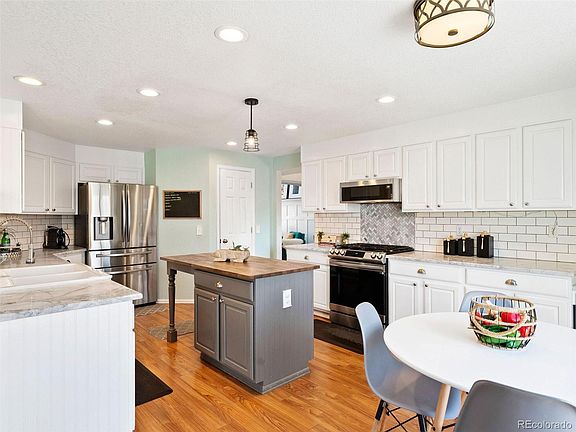 Craving abundant square footage, a spacious 3-car garage, and an expansive lot? Allow me to introduce Castlewood Ranch, where 1351 Oldfield Street awaits to welcome you home. Nestled on a rare, fully fenced .4-acre lot, this property offers ample space for outdoor entertainment, gardening, and recreation. This gracious and unique floor plan boasts 7 versatile bedrooms (4 upstairs and 3 in the basement) and 4 full bathrooms, effortlessly accommodating large families or guests. Additionally, a flexible main floor study, adjacent to a 3/4 bathroom and laundry, provides the option for additional main floor living. Upon stepping inside, you'll be captivated by the dramatic 2-story living and family rooms, adorned with custom millwork details and thoughtful upgrades throughout. The upgraded eat-in kitchen features quartz countertops, fresh white cabinetry, a spacious walk-in pantry, a convenient butcher block island, and newer stainless-steel appliances. Seamlessly connected to the 2-story family room, the open-concept kitchen overlooks the expansive backyard. Upstairs, discover the coveted 'four bedrooms on one level', including a large, vaulted primary suite with an ensuite 5-piece bath. In the finished basement, find 3 additional conforming bedrooms and a newly remodeled full bathroom with tub and double vanity, offering versatile space for multi-generational living or expanded living/recreation areas. Outside, the sprawling lot (nearly half acre) offers endless possibilities for design and functionality. The lot size is truly a standout feature in the Douglas County market known for its compact lots. Inside and out, this home epitomizes value, longevity, and versatility.