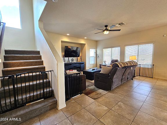 This well-maintained home is in a beautiful location, backing up to a wash with no neighbors behind, offering stunning views. The master bedroom features a balcony with fabulous views. One bedroom and full bathroom are conveniently located downstairs. Additionally, the home is close to a park.