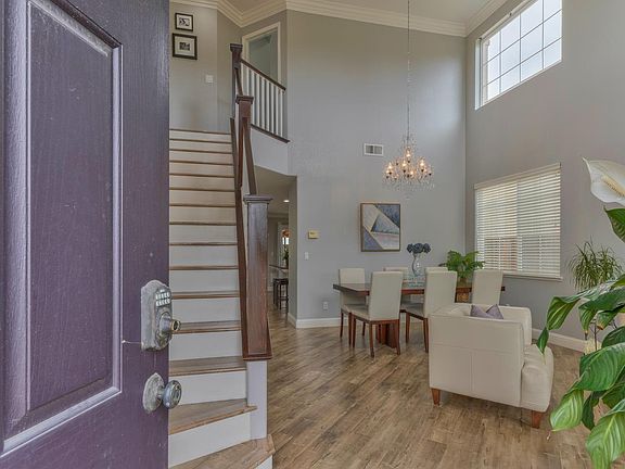 Situated at the end of a quiet cul-de-sac, this home boasts charm and curb appeal. With 4 bedrooms, 3 full baths, a loft and an outdoor kitchen. Enter into the formal living & dining area where you are welcomed with high ceilings, crown molding, a beautiful chandelier & plenty of windows to fill the space with natural light. The kitchen has granite countertops, stainless steel appliances, a large island and a breakfast bar. Next to the kitchen you have a family room with a beautiful mantle & fireplace, built-in shelving & cabinets. Past the family room you have a highly desired ground floor bedroom and a full bath. The outdoor kitchen is perfect for those family BBQ's. The second floor has spacious loft /home office. The laundry room conveniently located on the second floor. The spacious master bedroom with vaulted ceilings and large walk-in closet in your sanctuary. The master bath has beautiful tiled floors, dual sinks, soaking tub and gorgeous mosaic tiled stand up shower.