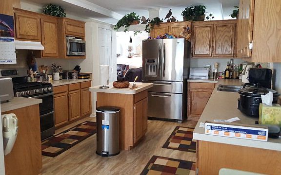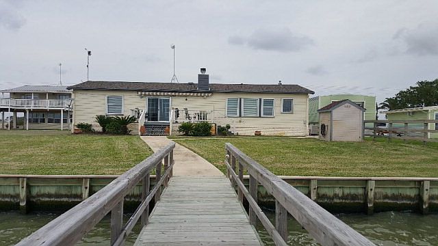 This 60 X 28 Windstorm Certified Solitaire Modular home sits on 12- 2X2 concrete beams with a 4 slab and brick skirting. Fenced front yard with tropical. 30 X 30 detached garage with open bath inside. Small efficiency in garage equipped with TV, bed, small refrigerator and a/c. Climate controlled recreation room with commercial grade kitchen and roll up insulated garage door. This waterfront lot has a railed 300'pier with a covered boat house and a 15 X 30 T-Head equipped with fishing lights. Inside the boat house is a climate controlled tackle room with a small refrigerator, freezer, sink, hot and cold water, shelving. A built in live bait well is also part of the boat house. A closed circuit, high definition security camera system is set up in the front, back and in the boathouse. This modular has propane stove with underground tank. The master has picture windows overlooking SA Bay. Electric Awning on back deck to provide sun protection. This is a must see.