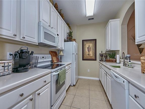 Welcome to a resort-style, sought after 24/7 guard gated community of Bella Trae. 2nd floor unit in elevator building featuring 3 bedroom, 2 bath, corner unit providing privacy. This beautifully appointed unit features high ceilings throughout, very well maintained carpet, in the main living area, ceramic tile in the kitchen and bathrooms. The fully-equipped kitchen features lots of cabinet, all appliances, The split 3 bedroom floor plan offers a master suite with a huge walk-in closet and en-suite bath. The second, largest bedroom also boasts a walk-in closet and has direct access to the extra-large bath which features a convenient-for-her vanity area. The third bedroom could easily serve as a guest bedroom/home office or child's room. Bella Trae offers many luxurious amenities including a zero-entry heated oasis style pool and spa, a state-of-the-art clubhouse with fitness center, aerobics studio, men's & women's locker rooms, bocce court, putting green, tennis/pickle ball court, billiards center, library, and multi-purpose events room. Enjoy one of the planned events scheduled by the Lifestyle Director or simply enjoy the peaceful surroundings of this no-short-term-rental community. Your Ventura Condominium HOA also includes water, basic cable/internet, external building maintenance, grounds maintenance, trash/recycling collection, and pest control. A carport with adjacent storage area is included with the unit.Situated minutes away from Disney parks in desirable Champions Gate, Bella Trae is also walking distance of an assortment of restaurants as well as the the Omni Orlando Resort which offers world-class golf, and a full-service spa. Schedule your private showing today, and take advantage of today's affordable interest rates Seller offering a Home Warranty