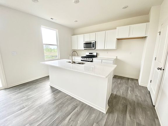 New construction home ready for a quick move-in at Cambridge Lakes North! Popular Sienna plan offers 9' ceilings on your main level, 3 bedrooms and 2.5 baths. Coming through your front door you will find your powder room, the first coat closet, and a large storage closet. Continuing down the hall you find your stairs to the second floor before entering your great room. The great room provides a great space for entertaining that opens into the dining and kitchen area with tons of natural lighting and a fantastic backyard view. Your kitchen features white designer cabinetry with quartz counters and a nice sized island complete with a stool overhang and spacious pantry off from the garage and an additional coat closet. Walking upstairs you will find a great size primary bedroom with dual vanity sinks completed with a walk in closet! Your secondary bedrooms are all in their own corners of the home as well giving everyone a private feel. And a laundry room conveniently located on the top floor as well. Impressive innovative ERV furnace system, tankless water heater, and Smart Home technology round out the amazing features this home has to offer! Enjoy all the community areas with tons of walking/bike trails and scenic views throughout. All Chicago homes include our America's Smart Home Technology which allows you to monitor and control your home from the comfort of your sofa or from 500 miles away and connects to your home with your smartphone, tablet or computer. Home life can be hands-free. It's never been easier to settle into new routine. Set the scene with your voice, from your phone, through the Qolsys panel which you can schedule it and forget it. Your home will always await you with your personalized settings. Our priority is to make sure you have the right smart home system to grow with you. Our homes speak to Bluetooth, Wi-Fi, Z-Wave and cellular devices so you can sync with almost any smart device. Builder Warranty 1-2-10. Exterior/interior photos of similar home, actual home as built may vary.