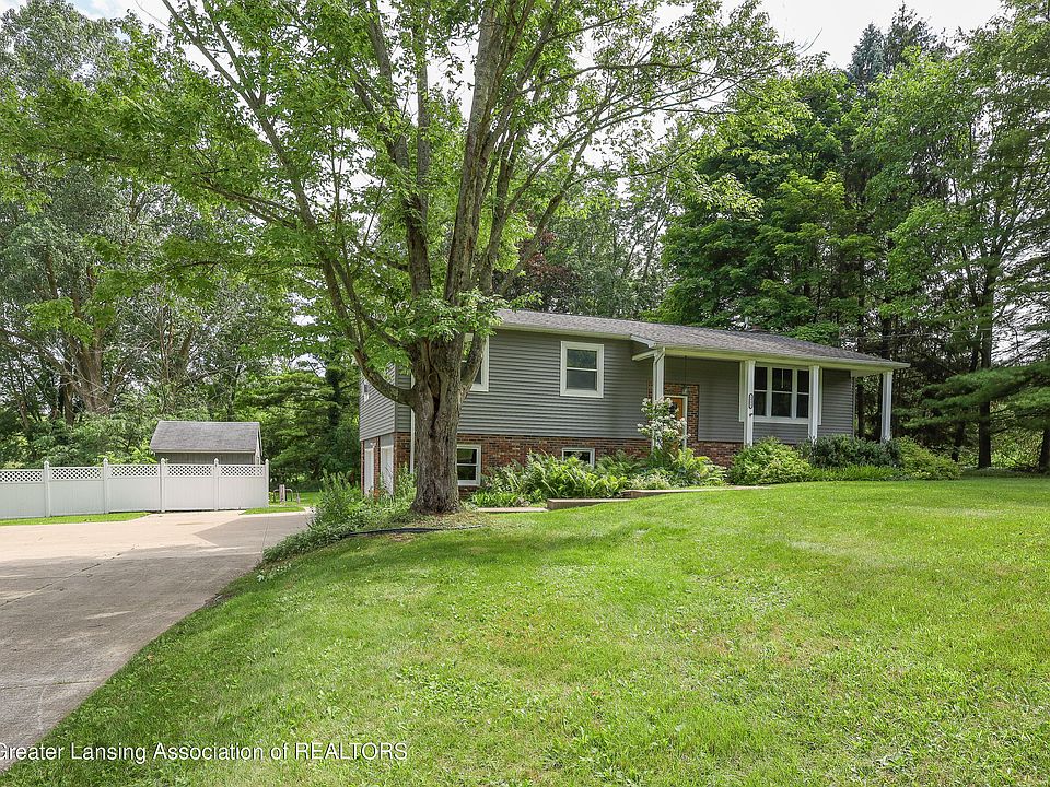 Just 10 minutes from the hustle and bustle of Downtown Lansing or DeWitt, this immaculately maintained home has blessed this family for 47 years and now it ready to find its new owners! The home offers the serenity of country living without sacrificing proximity to urban amenities. This beautifully remodeled home boasts four spacious bedrooms, two full baths and two living spaces. The heart of the home, the kitchen, was completely updated in 2017 and features modern amenities and stylish finishes, including white cabinetry, a kitchen island, and Corian countertops. Solid wood floors flow through the living room, kitchen, and dining room, adding warmth and character, while many newer windows let in abundant natural light. Step outside to your private oasis a lovely patio area ideal for entertaining, surrounded by mature trees providing ample privacy. Kids will adore the tree fort, and you'll appreciate the large shed for all your storage needs. The two-car attached garage ensures convenience and extra space. Other recent updates include a new roof (2019), brand new carpet, and fresh paint in the bedrooms, ensuring a move-in-ready experience. Don't miss your chance to own this perfect blend of country charm and city convenience!