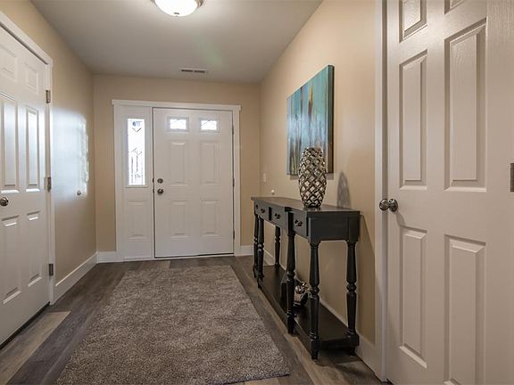 Sensational one-level floor plan with elegant finishing's. Home is designed with natural earth tones creating a warm environment. Vaulted ceilings, extra large foyer, open floor plan with easy assess from dining area and master suite to back patio area. Kitchen has an abundance of cabinetry and countertops; master suite is extra large with a huge walk-in closet and a lovely master bathroom. Spacious and efficient all in one. Sod and Sprinklers included in front of house.