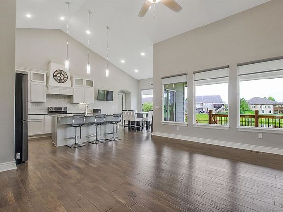 Back on the market due to no fault of seller or house. Think of everything you are looking for in a property, and you'll find it here ... A home that is less than three years old, but with very few remaining specials, a one-third acre cul-de-sac lot backing to a pond/lake and wooded reserve, a popular neighborhood that feels like country, and so much more. You are welcomed into the open living/dining/kitchen area where you'll find beautiful hardwood flooring, modern wall paint colors, a gas FP with spectacular stone surround, custom window shades, and a kitchen complete with granite countertops, island, large walk-in pantry, and upgraded appliance package. The split BR plan features the master off the kitchen/dining with an en suite bath that has a custom tile shower, tub, dual sinks, separate toilet room, and walk-in closet. The closet is a pass-through to the laundry room which exits to the drop zone area leading to the 3-car garage. Two additional bedrooms and full bath complete the main floor layout. The view out basement offers a large family/rec room with custom wet bar, two more bedrooms and another full bath. You can walk out at this level and up to the back yard. Another relaxation spot is the covered deck, overlooking the views. An irrigation well and sprinklers make the yard and landscaping a very pleasant oasis. You have heard the expression "better than new"; that is a perfect description of this fabulous home in Equestrian Estates.