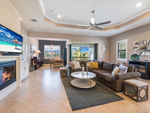 Welcome to Esplanade at Lakewood Ranch where the amenities are as bountiful as sun-filled days. Beautifully styled with exceptional details and décor, this three-bedroom, three full bath condominium presents a pristine backdrop for living. Step inside to a light and bright open concept floorplan featuring tray ceilings with crown molding, tile on the diagonal, and custom built-ins. The unencumbered living room is centered around an electric fireplace with stone accent wall. There is a sun-lit nook for an office or reading area. Your inner chef will delight in preparing meals in the well-equipped kitchen, complete with stainless appliances, center island with breakfast bar, pantry, cream-colored cabinets, and granite surfaces. A formal dining room encourages gatherings over good food and even better conversation. A disappearing corner slider connects the lanai with the entire great room creating breezy indoor/outdoor living. Unwind in the cozy master suite with plantation shutters, carpet, and a master bath with dual vanities, immense walk-in shower, and separate toilet. A second bedroom offers an en-suite bath while the third bedroom offers even more space for guests. Completing the picture, a laundry room comes complete with cabinets, granite, and utility sink. One-car garage. The amenities at Esplande include a championship golf course, tennis, a heated lagoon-style pool and spa, resistance pool, outdoor barbeque space, fire pits, pickle ball and bocce. Another bonus? Golf membership is not required. Buyer to pay a $2,500 One-time Capital Contribution at closing to the HOA. Also, $500 annually must be spent for Food and Non-alcoholic beverages at the Community restaurants.