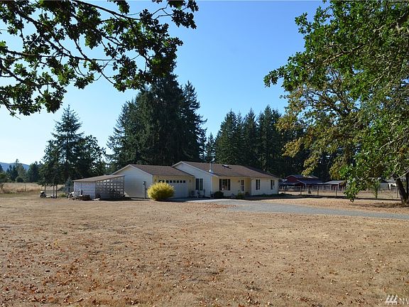 Affordable Equestrian Property? Look no further than this 1716sf Rambler on 2+acres dotted with majestic oaks & firs! The 2 stall shelter & pasture is enclosed w/premium aluminum fencing. Raised bed gardens, 2 storage sheds, equipmt cover, dog run. Inside, warm colors enhance the open living area. A wood stove & efficient ductless heat-pump ensure cool summers/warm winters. Garage has tons of shelving / 220v power for all your projects. Don't miss this one! Easy commute to Lacey and JBLM.