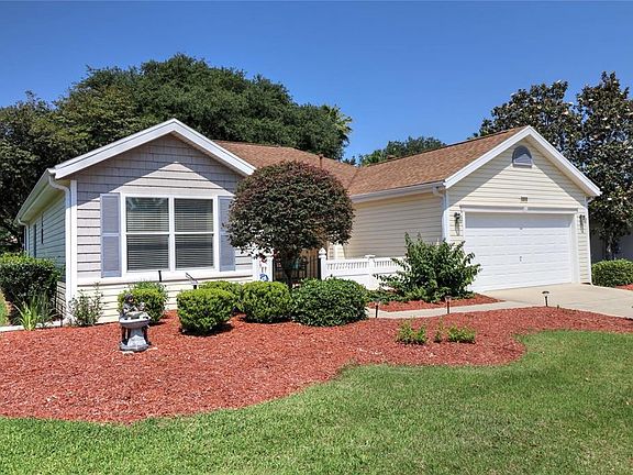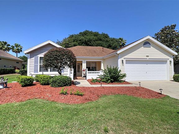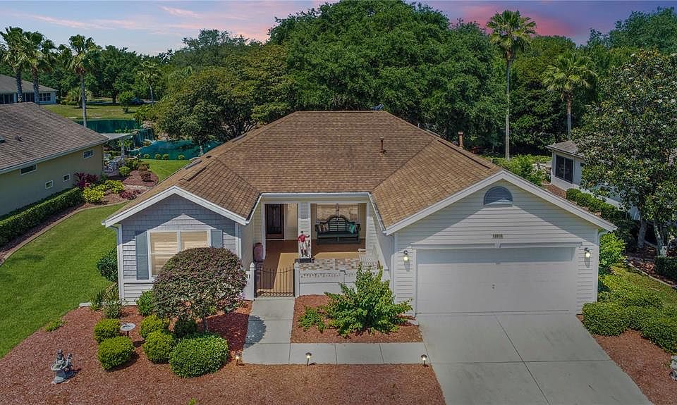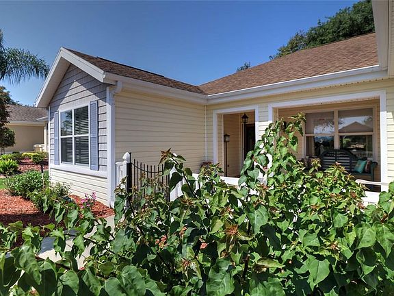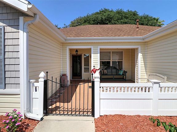 Location. Location. Location. One of a kind property. Sited on the pond in Highland Falls. Full view of pond & waterfall. Was one of the model homes for Del Webb and even better now! Courtyard entry. Designer entry door. Open, split plan. Kitchen just went through complete upgrade(2021) with soft close cabinetry, Quartz counter tops and newer stainless steel appliances; skylight. Unique herringbone designed tile flooring in heavy traffic areas. Built-in entertainment center. Bay window in the master bedroom with laminate flooring in both bedrooms. Skylights in both bathrooms. Bonus room with built-in desk and storage. Beautiful back yard with screened lanai and patio with accent columns to enjoy the tranquil sound of the waterfall. Outside living at its best. Newer roof 2014, HVAC 2008, newer doors throughout, newer ceiling fans. Security system installed but not activated at this time. Some furniture will be available under separate package. Two car garage, utility sink, service door. Quiet street on the Cul-De-Sac. See it today.
