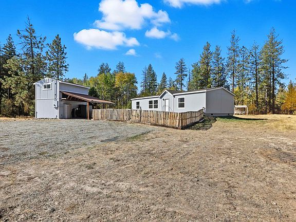 Tucked away on just under 11 acres, this 2017-built manufactured home offers modern comfort and quiet seclusion with an easy drive to Spokane, the airport, and I-90. The 1,456 sq ft home features an open concept layout with a spacious kitchen, dining, and living area perfect for gathering. The split floor plan provides privacy with a generous primary suite that includes dual sinks, a large soaking tub, and a huge walk-in closet. Outside, the land is mostly level with a balance of open space and mature trees—ideal for enjoying nature or future projects. The detached outbuilding offers two rooms (one upstairs, one downstairs) with heating and cooling—perfect for guests, hobbies, or a home office. Additional highlights include an RV hookup, an electric vehicle charger, and a reliable, productive well. Whether you’re looking for a peaceful retreat or a full-time residence with room to roam, this property offers the best of country living with modern convenience.