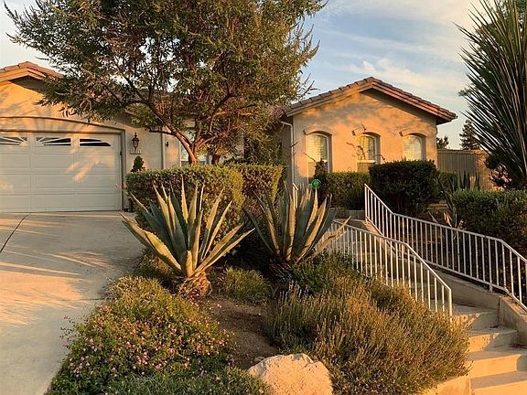 Nestled in the rolling hills with beautiful views. This picturesque home has everything you are looking for. Newly updated kitchen w/Viking Appliances looking onto a water feature in the stunning courtyard.Crown molding,New Bali Solar Shades, Shutters throughout .Spacious living room with a new fireplace insert.Large bedrooms with Jack and Jill bath. Master features a large en suite with walk in closets duel sinks plus a vanity. California Custom Closets even in the garage. No expense spared in making this home exceptional.Professionally manicured landscaping including many varieties of fruit trees making the outdoor space inviting. This home is immaculate in every way. A true resort feeling home.Perfect for entertaining!