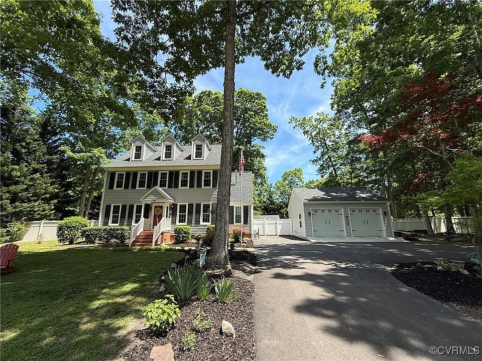 Welcome to your One-Acre Oasis in Chesterfield! This 4-bedroom 2.5-bath Colonial features an updated eat-in kitchen (2020) with stone countertops and stainless steel appliances- perfect for entertaining or enjoying casual meals. Relax in the cozy family room with a brick fireplace and gas log insert, or host dinner parties in the formal dining room. Upstairs on the second floor are three generous bedrooms with two full bathrooms. The primary features two walk-in closets and private ensuite bath. Two more spacious bedrooms and a hall bath with a shower tub complete this floor. The third floor offers a bonus room perfect for an office, gym, or gaming area, with a fourth bedroom tucked away for added privacy. Outside you will enjoy a fenced backyard retreat, complete with a composite plank deck, stamped concrete patio, and a detached shed equipped with a workbench and 110 V & 30 amp service for charging. A standout feature is the detached 2.5 car garage built in 2021 with 8-foot doors and a pull-through bay, perfect for large equipment or vehicles. An additional upgrade includes a shingle roof installed in 2017. All this is less than five minutes from shopping, dining, and entertainment, and has easy access to 288 and I95 while being less than 30 minutes to Richmond. Don't miss this rare combination of space, upgrades, and location- schedule you're showing today!