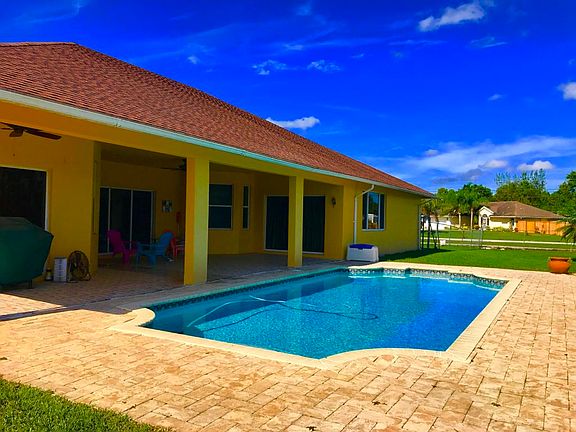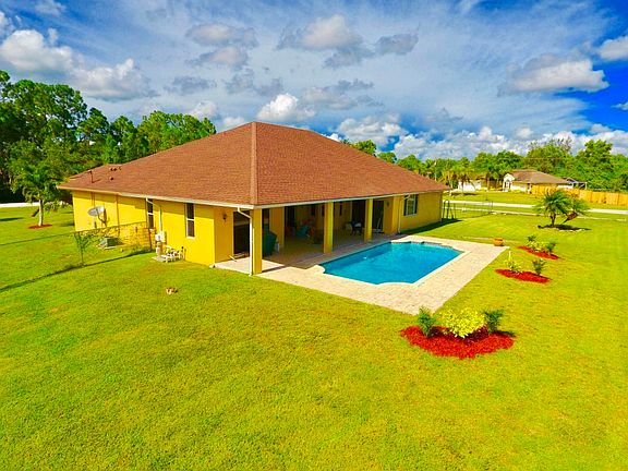 WELL MAINTAINED!! 4 BEDROOM 2.5 BATHROOM POOL HOME ON 1.37 ACRES. CORNER LOT. PAVED ROAD. MASTER SUITE WITH SITTING AREA, HIS AND HERS SINK AREAS, WALK AROUND SHOWER AND HUGE WALK IN CLOSETS. HUGE DESIGNER KITCHEN WITH CORIAN COUNTERS, 42 IN CABINETS AND ISLAND. SPLIT OPEN FLOOR PLAN. THIS HOME ALSO BOAST FORMAL LIVING AND FORMAL DINING ROOM. NEW PAINT, POOL 2008. HUGE CONCRETE DRIVE. BACK FULLY FENCED FOR PETS. ENJOY ENTERTAINING AT THE PAVER POOL AREA. MATURE LANDSCAPE. TRULY A BEAUTY!!! NO HOA- NO POND!! LOT HIGH AND DRY. BRING YOUR RV, BOAT, TRAILER OR HORSES. WALKING DISTANCE TO PARK. AND MINS TO SHOPPING, PUBLIX, AND BANKS.