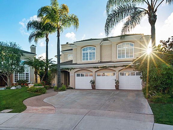 The lovely home has gorgeous sunset views and a large lot and is located at the end of a quiet cul de sac in the coveted neighborhood of Santa Fe Summit Promontory. Recently remodeled including completely new master bath, new wide planked hardwood flooring, new carpet & new stainless steel appliances. The home features a tropical backyard with a beautiful pool, lush landscaping ,spa, fire-pit, built in BBQ, pergola, expansive flagstone patio, spacious grassy area and side dog run. Other amenities include upgraded fireplace surfaces, custom built in''s, wrought iron staircase balusters, vaulted ceilings, thermal solar panels, newer water heaters, ceiling fans, Culligan home soft water system. Sunset views abound from the kitchen and dining rooms, family room; more views can be seen from the master bedroom and bath and the master retreat/exercise room. The Santa Fe Promontory neighborhood has sidewalks, canyon hiking trails, and open green areas. It is located minutes from award winning schools, shopping, restaurants, beaches, canyon trail walks, and much more.