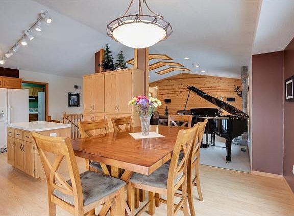 Executive 5BR/3BA Walkout Rambler on 2.63 acres in culdesac w/Battle Creek in back. Main floor laundry, prominent master suite with Jacuzzi tub. Immense, bright kitchen w/pantry and spacious eat-in dining room. Giant LR boasts of elegant lighted skylights, gas stone fireplace. Vaulted, T&G, open concept, dual heat sources. Heated 4 car attached gar/shop & 260sqft shed. Yard has perennial edibles, flowers, and large garden. Tons of storage space, close to Hwy 169 and 5 min SW of Princeton.