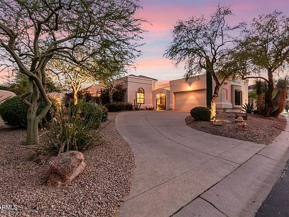 Beautiful Home located in the Villas at Scottsdale Mountain; a guard-gated community nestled in the foothills of the McDowell Mountain Preserve. Featuring a 24-hour guard gate, tennis courts, pool/spa, this is the perfect location for recreation and privacy! This Villa offers spacious rooms with beautiful architectural details. Entire interior has been freshly painted. Kitchen includes Viking appliances, gas cooktop, beamed ceilings and eat-in dining area with access to back/side patio, where you'll find an outdoor BBQ grill and fireplace. The living room features a gas fireplace. The interior has Saltillo tile flooring, floor to ceiling windows with City and Mountain views. Split floor plan with large bedrooms and walk-in closets. Plus, a den/office. A must see!