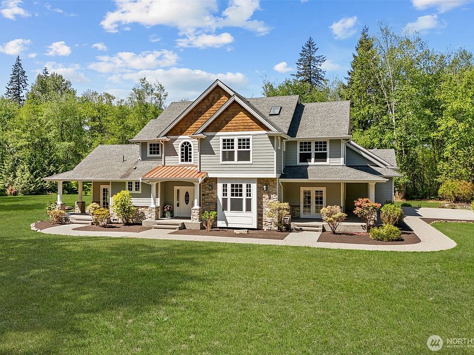 Show-stopping CUSTOM home, tucked away on dead-end street, built for entertaining & relaxing living on gorgeous 4.7 acres. A perfect blend of [LUXURY & COMFORT] with functionality in mind. Thoughtfully designed home includes a gourmet chef's delight kitchen, stunning hardwood floors throughout, 2 laundry rooms, multiple outdoor-covered living spaces, & a 3-car, RV bay garage. Primary suite features a walk-in closet, en-suite features [Spa-Inspired] soaking tub & shower, plus heated floors. Additionally, 2 bedrooms joined by bathroom, & a 3rd bedroom has a private bath. Media-bonus room on main floor is an additional 5th bedroom. Don't miss the opportunity to experience elevated living in comfort & style, in this meticulously crafted home.