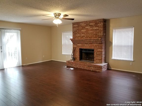 Home is ready for immediate move in. Granite counter tops, beautiful wood laminate floors down, carpet 1 yr, 18" tile on brick lay in kitchen and pantry, 2 ' faux wood blinds, new light fixtures and fans. Deck repainted. This home is perfect for entertaining or large crowds. Three living areas and 2 eating areas. Cozy brick fireplace in family room. Huge game room. Oversized master suite with large bathroom. Need to relax enjoy your own Sauna. Minutes from RAFB and BAMC. Attend the new Veterans Memorial HS