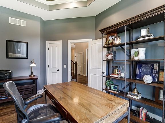 Magnificent is an understatement when it comes to this 6 bedroom 4.5 bathroom home with impeccable finishes and amenities. The pristine exterior and landscaping make a bold first impression. Step into the grand foyer and notice the den on your left that could double as a bedroom. The open floor plan and large windows make for an airy and bright feel through out. A large stone fireplace in the living room creates a cozy atmosphere. The kitchen is a chef's dream, equipped with a gas stove top, built in dual oven, single bowl farm sink, Range hood, pot filler and more. The enclosed sunroom is the perfect place to relax by the fire with a cold beverage and good company. After a long day, the master bedroom and en-suite provides a serene oasis with its spacious layout, vaulted ceilings, soaking tub, and large walk-in shower. There are 3 other bedrooms upstairs and 2 baths and that's not all! wait until you see the basement! The high ceilings and open layout make you forget you're in a basement at all. When you walk in you immediately admire the beautiful dark wood bar cabinets and complementing granite countertops. Enjoy a lazy Sunday in the cozy living room. The last bedroom and full bathroom are also in the basement along with a workshop. This outstanding home sits on an expansive .58 acres fully irrigated and boasts a crystal blue pond. You're not going to want to miss this one, especially since it comes with a security system and cameras so you can have peace of mind!