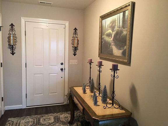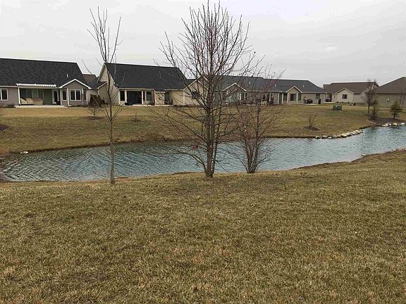 Only two years young! Immaculate water front villa! Open floor plan w/large breakfast bar island open to the Great Room. Cathedral Ceiling Great Room and Trey Ceiling master bedroom. All three bedrooms have WIC. Extra clothing rods above in master closet.Large 5' fiberglass shower in master bath. Hard surface flooring areas are vinyl plank. Good storage/linen closet space. Small storage area in rear of garage is 6x5. Large pantry. Newer style/wider pull down stairway in garage. HOA dues cover snow removal, mowing,trimming and mulching. There is a club house with work out equipment and pool table.