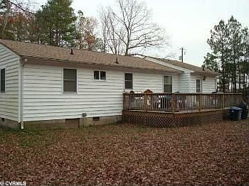HUGE REDUCTION!!! Short Sale in Prince George! Cute Ranch secluded on 1.5 acres. Can not see home from road. Home was remodeled in 2007 - new kitchen, extended living room, new bath, new roof and vinyl siding! 12x26 deck. Detached Shed. Thermal Windows. Enjoy country living with easy access to highways, shopping, restaurants, schools and is an easy commute to Fort Lee. Home is sold as is.