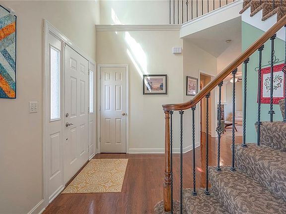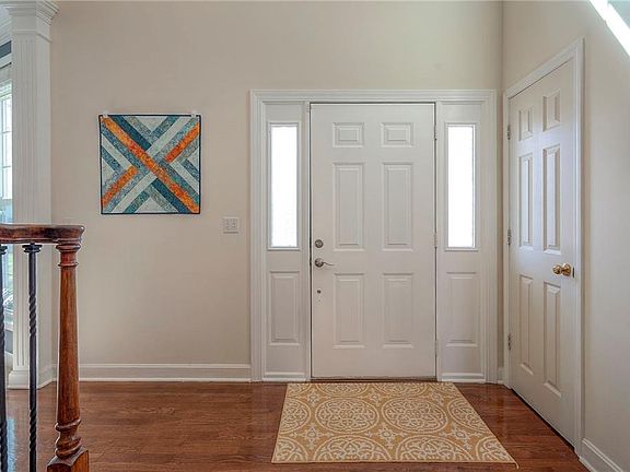 Feels like home as soon as you enter with huge windows and natural light. Open floor plan will make living, working and entertaining a breeze. Lots of bonus space. Bump out breakfast room between kitchen and hearth room. And a sitting room/nursery/office off the primary bedroom with a south facing window. All bedrooms have walk-in closets. Laundry on the main level. Lush landscaping with beautiful mature trees.