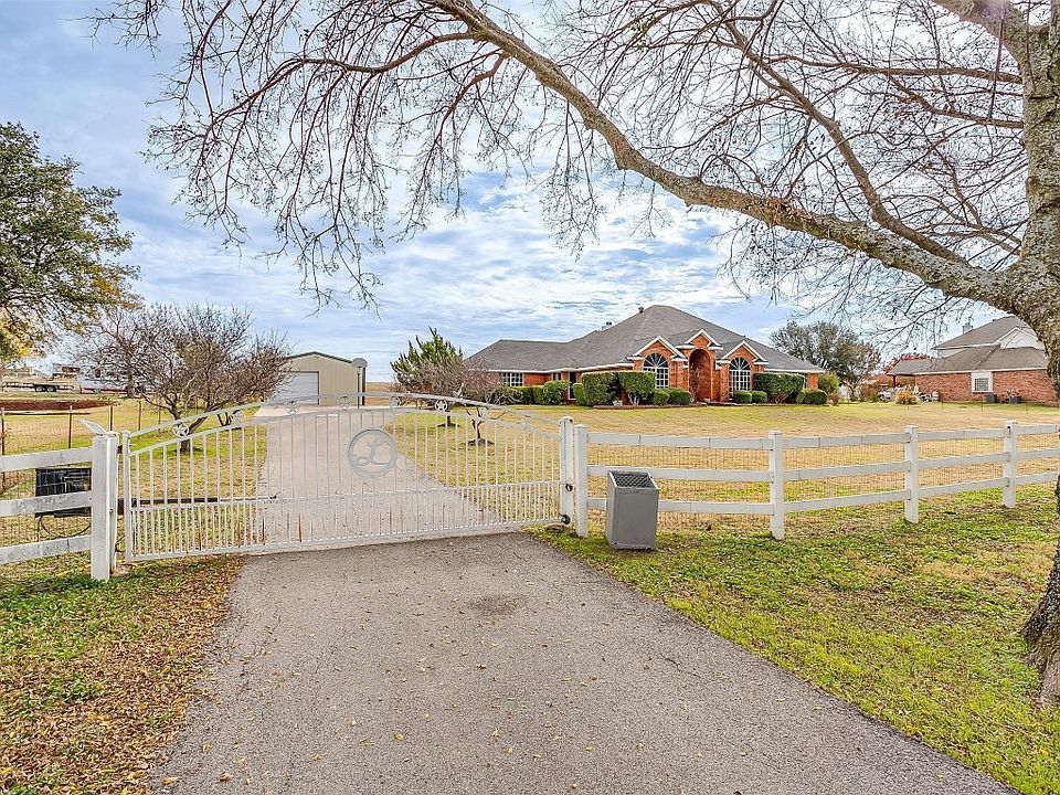Beautifully maintained home on 2.5 fully fenced acres in award winning Northwest ISD. The inviting entry opens to a spacious study and formal dining room. The nicely updated kitchen is the center of this home & features SS appliances, granite counters & plenty of cabinets. and is open to a nice size breakfast room & large family room. The family room is centered around a beautiful WBFP with a wall of windows offering a great view to the pool and outdoor space. The very spacious primary bedroom is a perfect retreat with a sitting area & ensuite bath with updated shower. The updated play pool is fenced for extra safety. There is also a hot tub & second patio with a pergola. There is a large insulated 24 x 36 shop with electricity, 1 garage door & 1 manual bay door. NO HOA! NO CITY TAXES! No water bill - you have your own well. So many upgrades - see list on transaction desk. Country living with the convenience of the city. Easy access to HWY 287, dining & shopping.