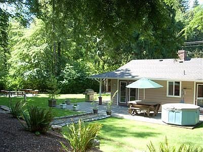 Price REDUCED. Charming Rambler on private shy 1 acre lot. The yard is fenced & beautifully landscaped, with a large firepit, fountain, patio & completely surrounded by trees for privacy. Inside is remodeled with new kitchen, baths, flooring and more. 3 nice sized bedrooms with an additional room for office or spare room. The home has a generator for back-up power and a pellet stove to keep the home warm in the winter. This lovely private home is a cozy retreat.